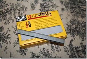 Alright, now it’s time to pull out the power tools!! Don’t worry, if you don’t have a staple gun that hooks up to your air compressor, you are not out of luck! Up until just a few weeks ago, I only had an electric staple gun and that works just fine! You can even do it with a manual staple gun, just be aware that your arms are going to be tired!